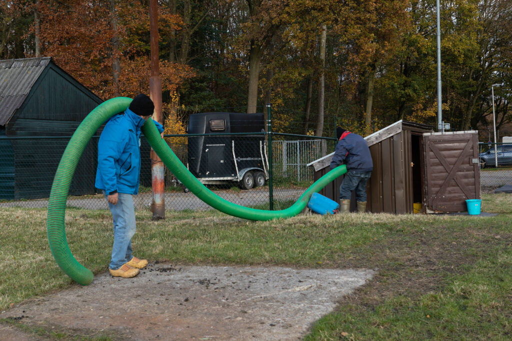 Maandag 19 november is de pomp gesmeerd en aangezet om het water weer op de ijsbaan te zetten. De schapen hebben de afgelopen weken nog het gras kort gegraasd en de laatste stukjes met wat hoog gras zijn nog even snel gemaaid. De pomp zal weer de hele week moeten draaien om de ijsbaan vol met water te krijgen, welke nu ook over 2 banen verdeeld is.